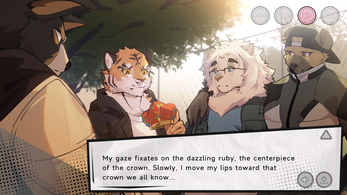 "Coronet of the sagacious lord" is a romantic FVN(furry visual novel) represented in the form of dramas. As tiger Qian Lucai(钱禄财), you’ll collaborate with your childhood friends—hyena Yan Liaoliao(严辽寥), border collie Luo Luo’ai(罗罗埃 ), lion Jiang Bolao(姜伯劳), and white wolf Ji Ye(季叶)—to select the most suitable drama to play, helping them confront their personal struggles during the performance.